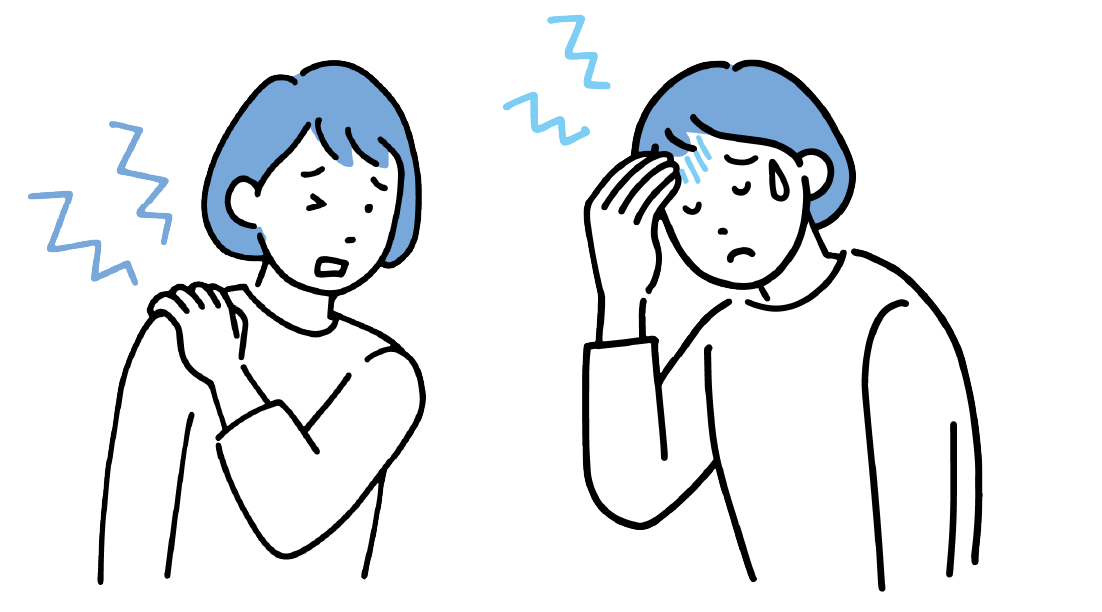 このような状態が続くと、肩こり、頭痛、腰痛、背中のハリ、慢性的な疲れといった不調が現れやすくなります。