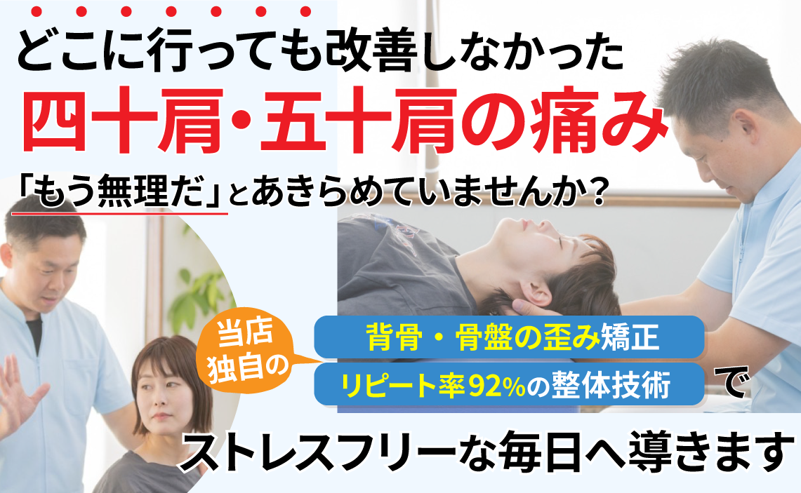 もし、四十肩・五十肩などの肩こりでお困りなら、肩こりの専門家、あおい接骨院にご相談ください。