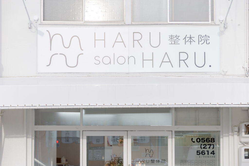 HARU整体院とSalon HARU.は建物の1Fと2Fにあり、身体の外側(骨格・筋肉・姿勢)と内側(自律神経・ホルモン・腸内環境)の両面から、不調の根本改善をめざすトータルケアを行っています。