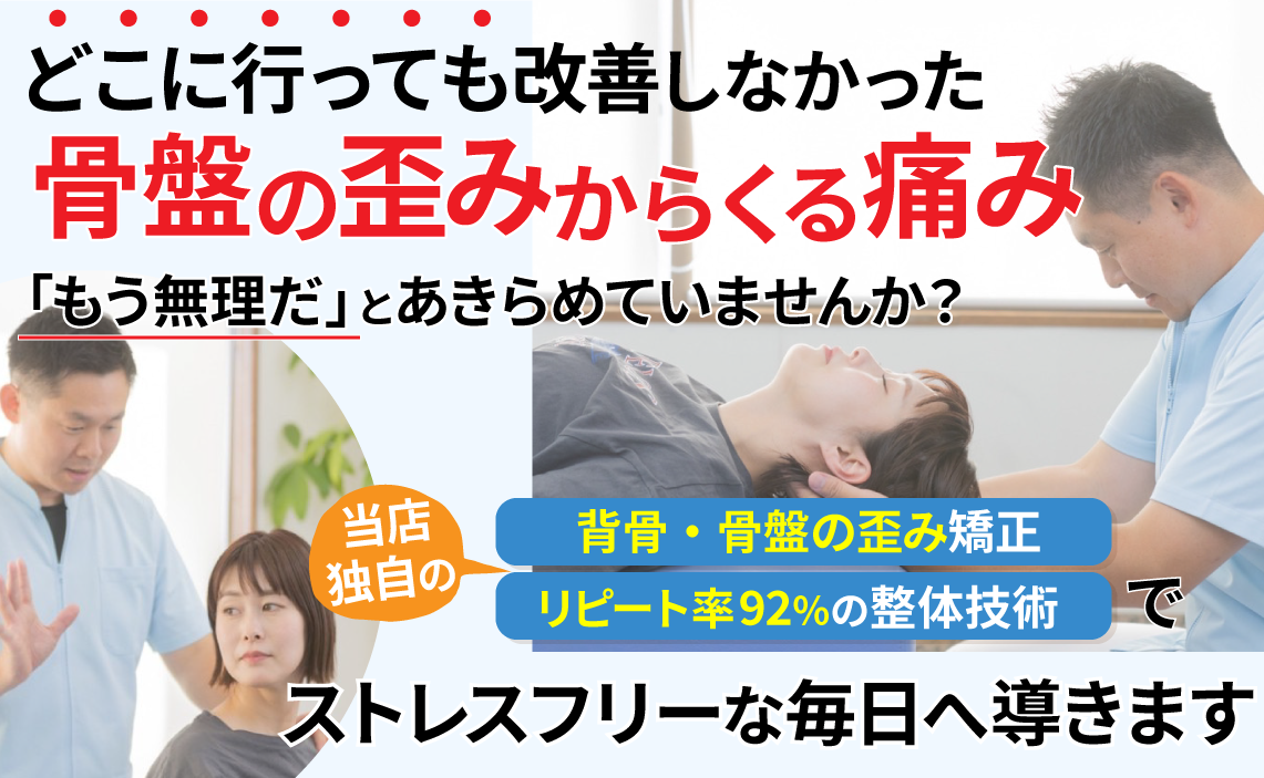 特に、背骨や骨盤の歪み、筋肉のアンバランス、関節可動域の制限といった身体の構造的な問題が解消されないままでは、根本的な改善にはつながらず、痛みを繰り返す「負の循環」に陥ってしまいます。